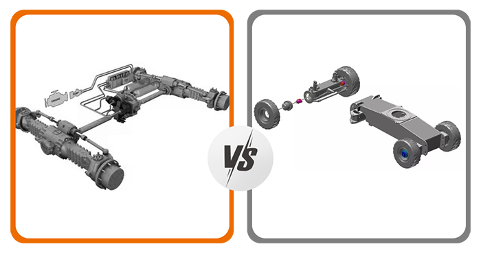 目前,业内臂式平台驱动桥主要有2种形式,即一体式车桥和分体式车桥(转向连接盘、驱动马达、行走减速电机等组成)。